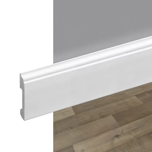 Zócalo Blanco Pintable de Epsilon de Atrim de 8 cm de altura, de diseño moldurado y elegante.