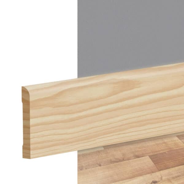 Zócalo de pino natural, de cara plana y terminación curva, que se adapta a todos los estilos.