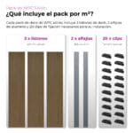 3 Listones de deck + 2 Alfajías de aluminio (4x2x205cm) + 20 Clips de fijación