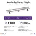 Desagüe Lineal Narrow Atrim 70 cm Acero Inoxidable Mate
