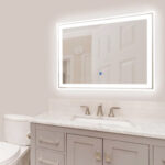 Espejo táctil con luz LED perimetral. Ideal para utilizar en baños y toilettes. Emite una luz media que no molesta a la vista.