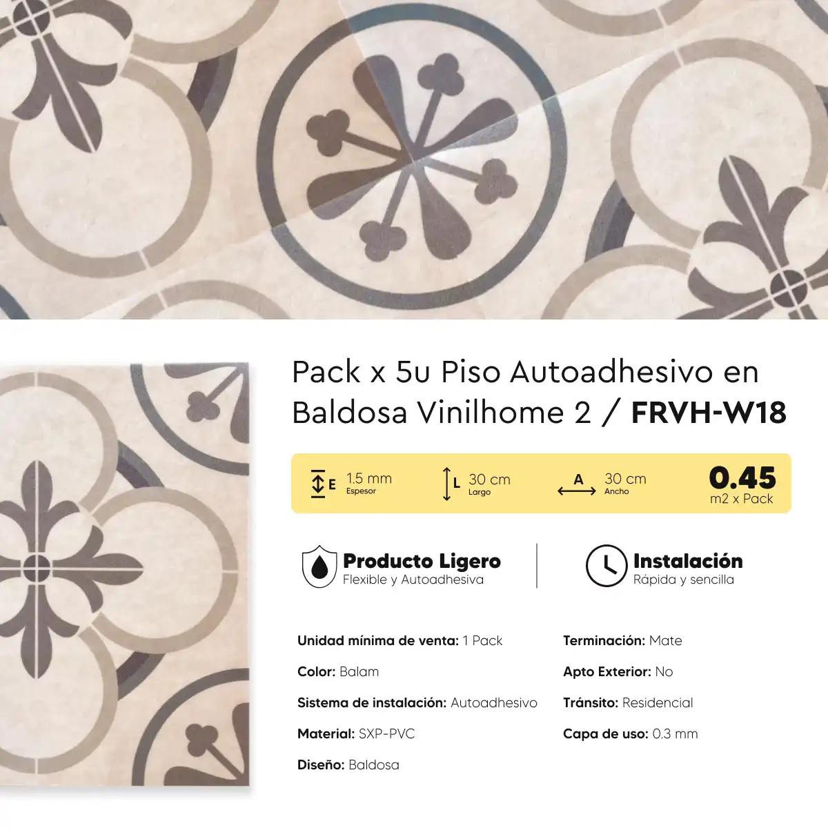 Piso Vinílico Autoadhesivo Vinilhome 2 en Baldosas de tránsito residencial apto para piso y pared en sectores de interior.