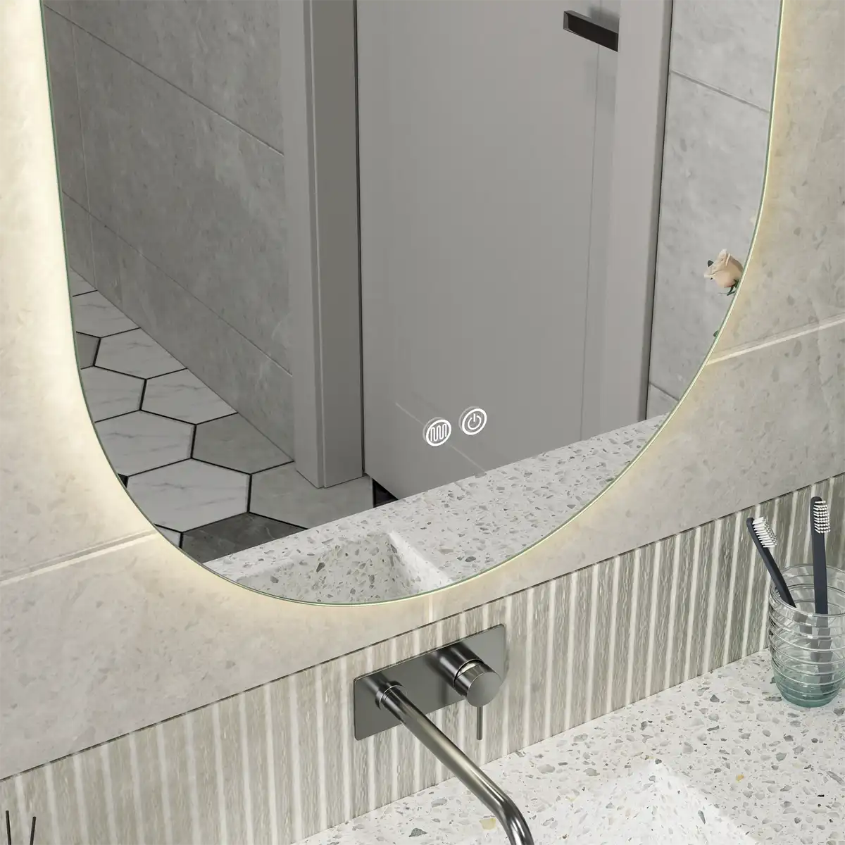 Los espejos MirrorOn combinan iluminación LED cálida regulable de 4500K con sistema antiempañe, ideales para baños y tocadores modernos.