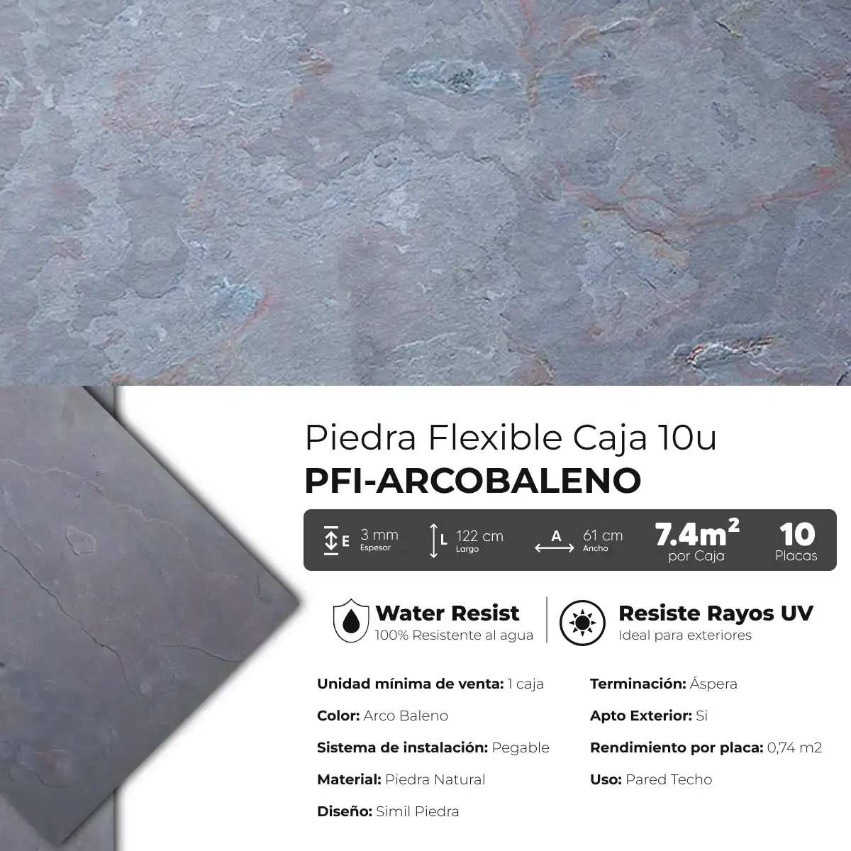 Piedra Flexible Natural 61×122 cm Arcobaleno Piedrafina Pack x10