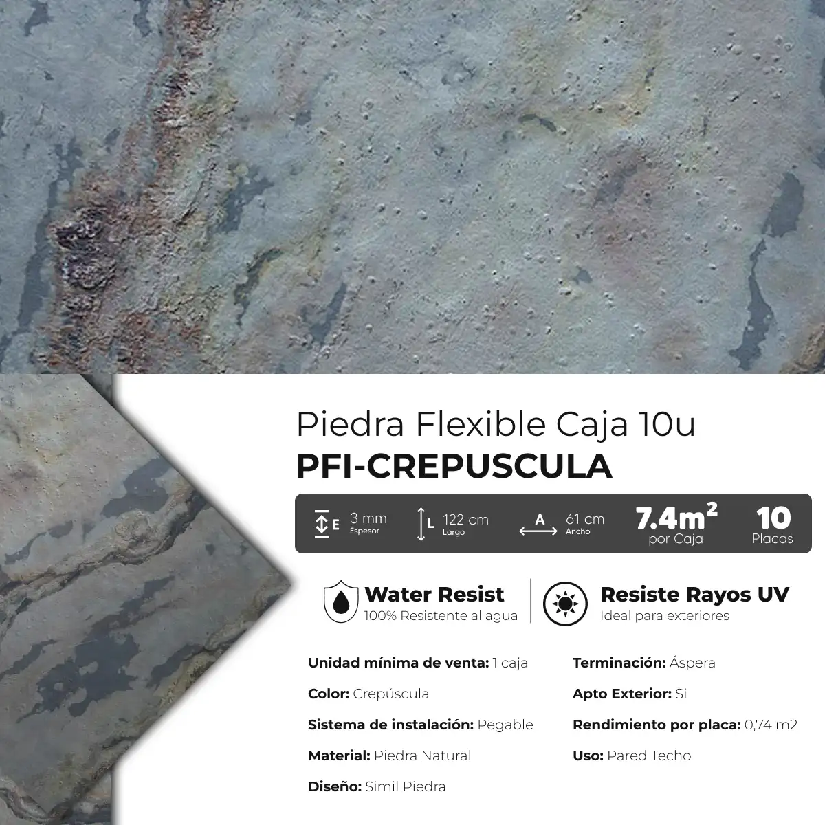 Piedra Flexible Natural 61×122 cm Crepúscula Piedrafina Pack x10
