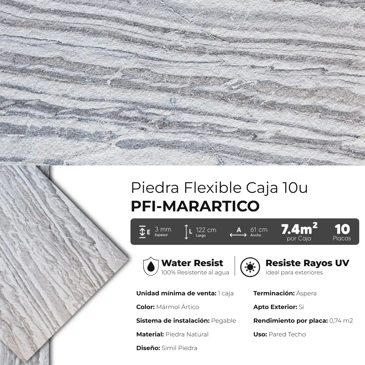 Piedra Flexible Mármol 61×122 cm Ártico Piedrafina Pack x10