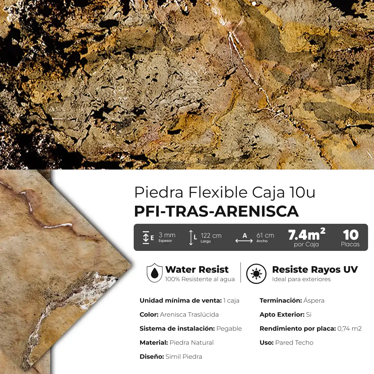 Piedra Flexible Traslúcida 61×122 cm Arenisca Piedrafina Pack x10