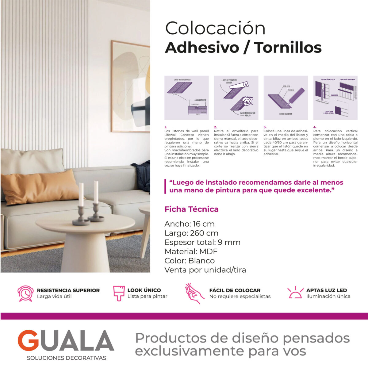 1- Los listones de Wall panel Lifewall se presentan laminados, por lo que no necesitan proceso de acabado adicional.