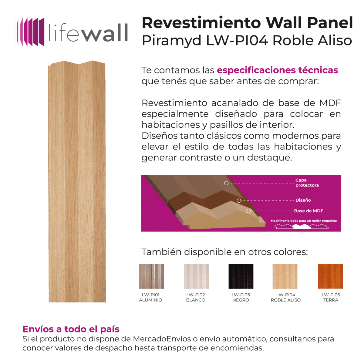Revestimiento Wall Panel Lifewall Piramyd MDF Roble Aliso