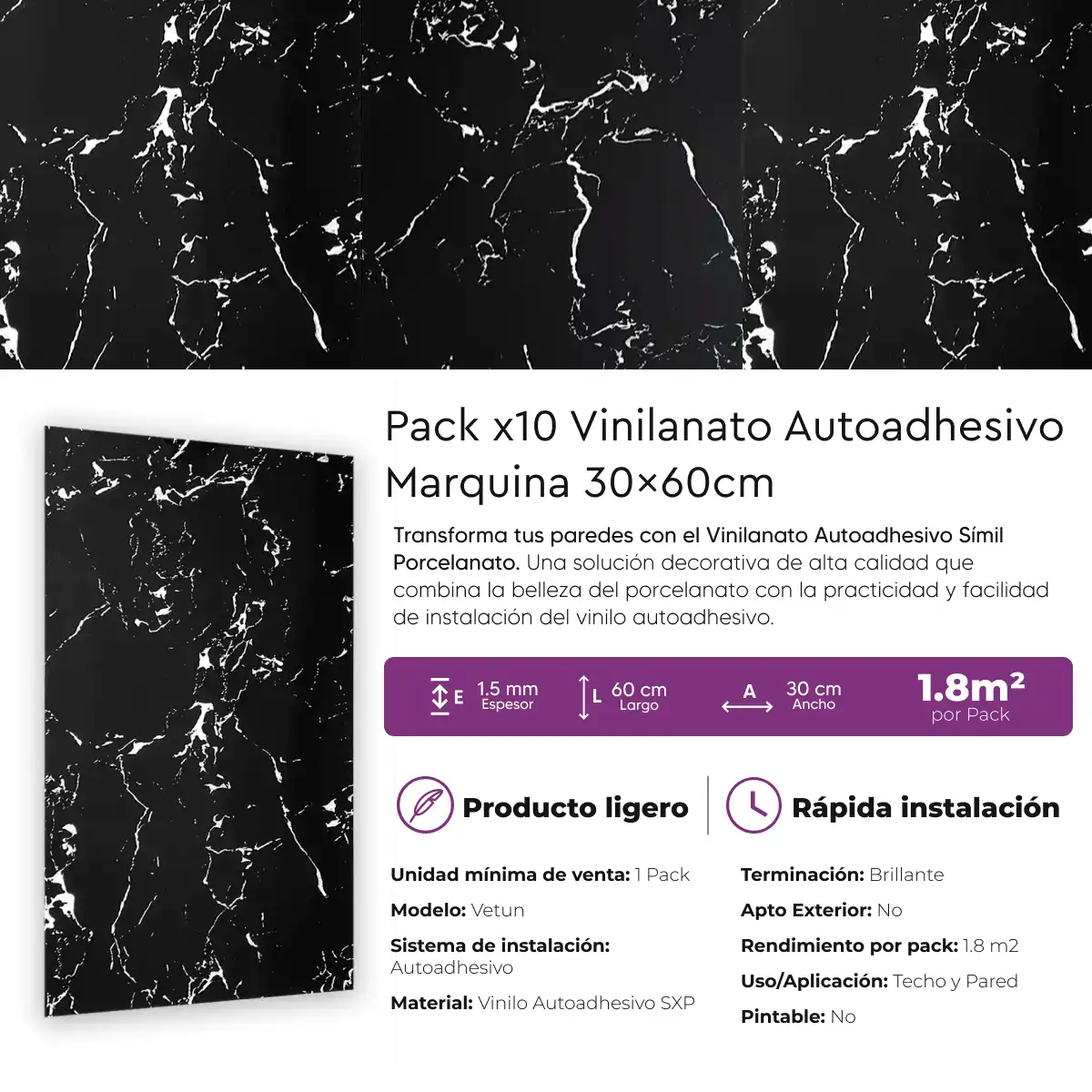 Vinilanato Autoadhesivo Decorativo 30×60 Marquina Pack x 10 Lifewall 1.8 m²