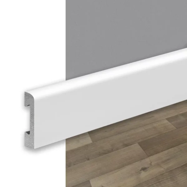 Zócalo Blanco Pintable de Epsilon de Atrim de 7 cm de altura, de diseño curvo y minimalista.