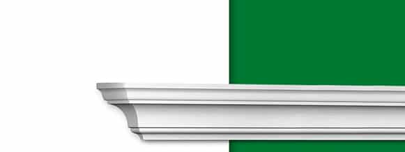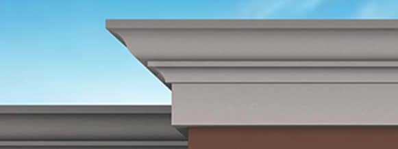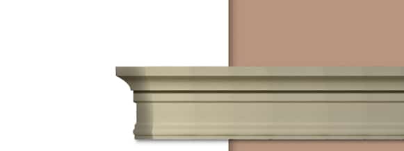 Línea de molduras robustas con base de poliestireno de alta densidad apto para exterior. Posee un revestimiento cementicio color beige para proteger la moldura y permitir pintar.