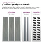 3 Listones de deck + 2 Alfajías de aluminio (4x2x205cm) + 20 Clips de fijación