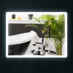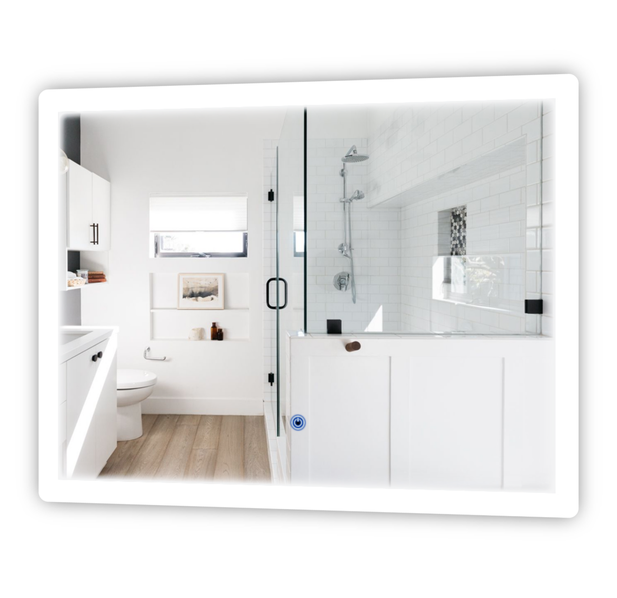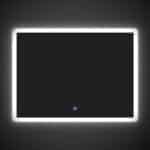 Espejo táctil con luz LED perimetral. Ideal para utilizar en baños y toilettes. Emite una luz media que no molesta a la vista.