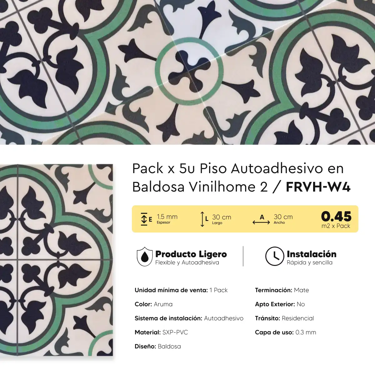 Piso Vinílico Autoadhesivo Vinilhome 2 en Baldosas de tránsito residencial apto para piso y pared en sectores de interior.