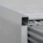 Perfil de vista cuadrada que acompaña griferías y diseños rectos. Protege la unión de los revestimientos logrando un diseño moderno. Se utiliza en porcelanatos rectificados o como listello decorativo.