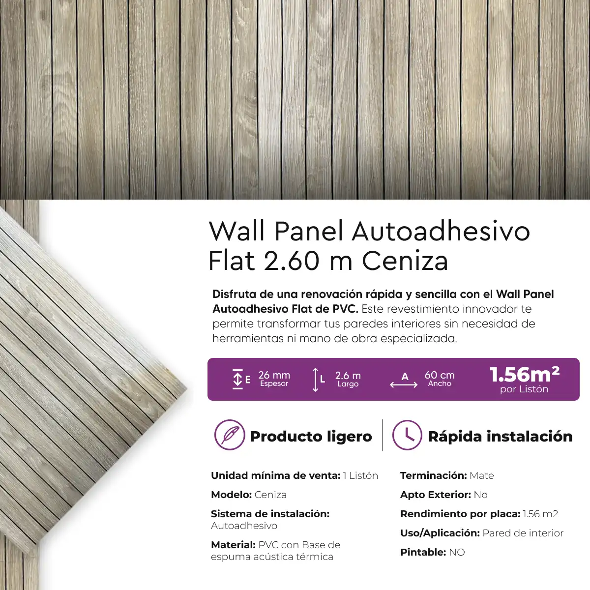 Revestimiento Autoadhesivo Wall Panel Flat Ceniza Mate 2.60m