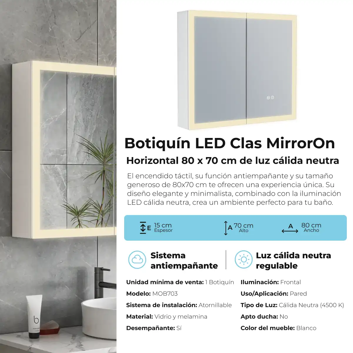 Botiquin para baño con Espejo LED Clas MirrorOn 80×70 cm Luz Cálida