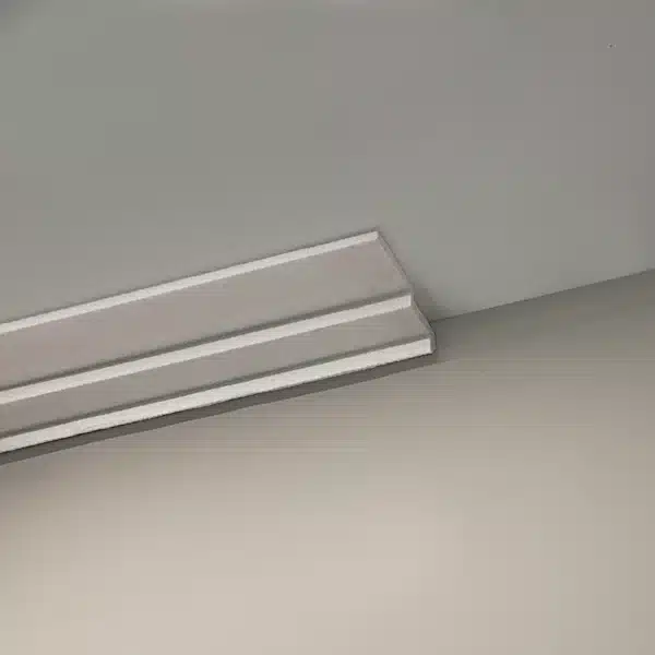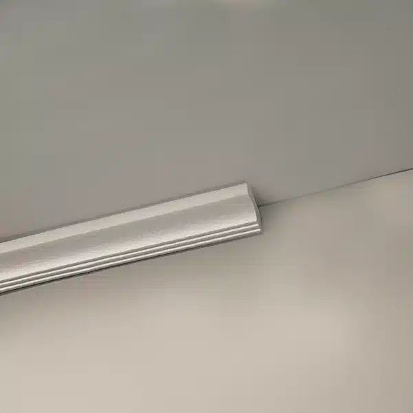 Se coloca con adhesivo para molduras o enduído. Recomendamos cortar las esquinas de empalme con un inglete para molduras y una sierra o cutter.