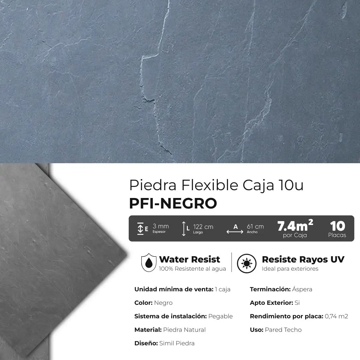 Piedra Flexible Natural 61×122 cm Negro Piedrafina Pack x10