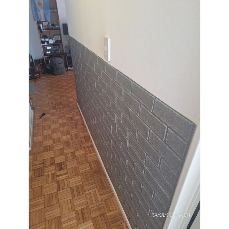 Excelente – Las placas cambian totalmente la apariencia de la habitación. Son faciles de colocar y cumplen su función. Lo que si para tener en cuenta, que no tapan del todo la pared de atrás. Por ejemplo si tenés una mancha muy notoria se puede transparentar un poco con las placas de color blanco.