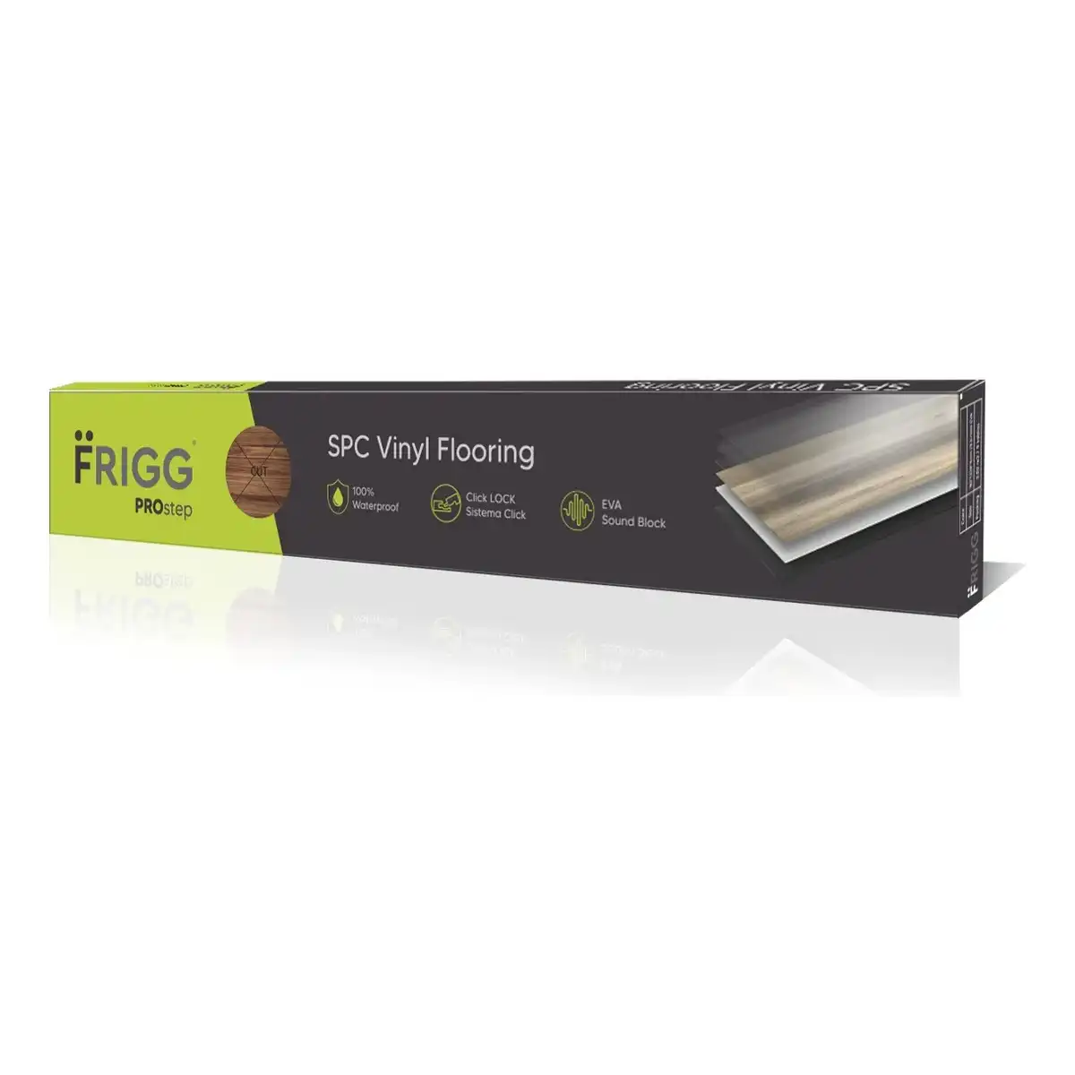 Piso Vinílico Click de Frigg de SPC Virgen de tránsito comercial alto. Su sistema de encastre tipo click permite una instalación fácil y rápida. Resistente al agua.