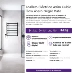 Toallero Eléctrico Atrim Flow Cubic 60×50 cm Negro Mate