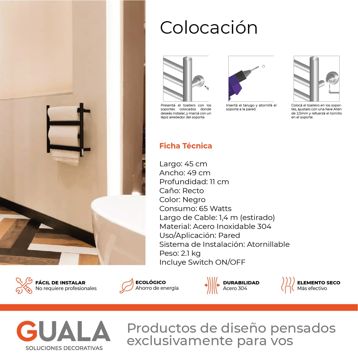 El toallero eléctrico «Jet» de Atrim es elegante y funcional, hecho de acero inoxidable negro de alta calidad. Mantiene tus toallas cálidas y secas, agregando comodidad y lujo a tu baño. Fácil de instalar y eficiente en energía.