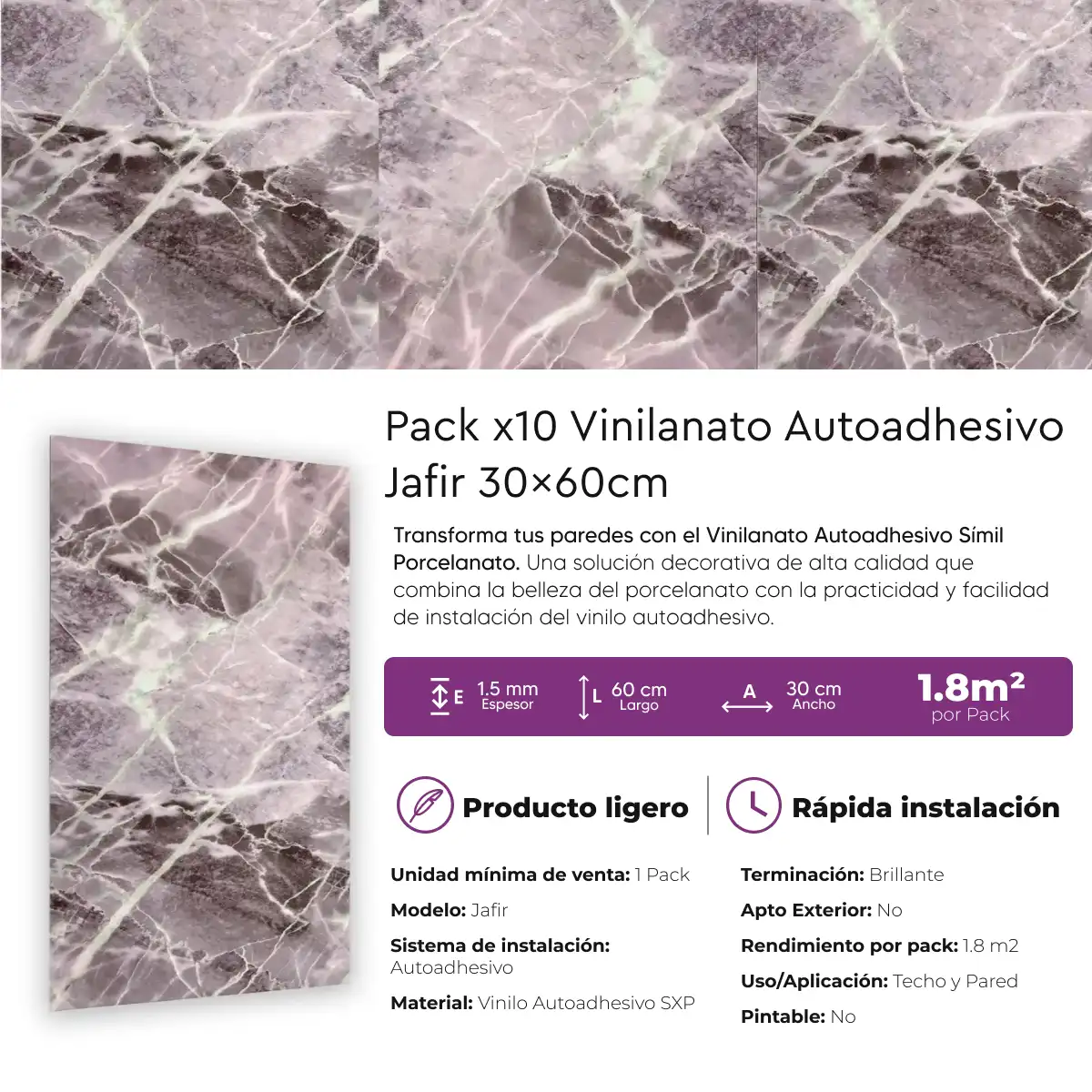 Vinilanato Autoadhesivo Decorativo 30×60 Jafir Pack x 10 Lifewall 1.8 m²