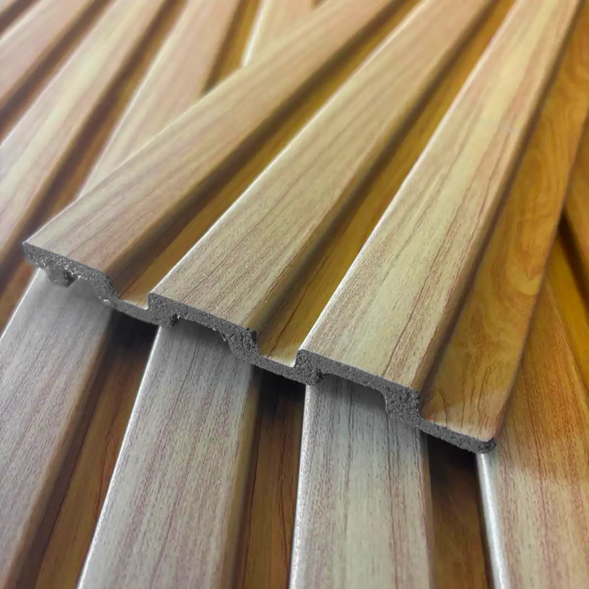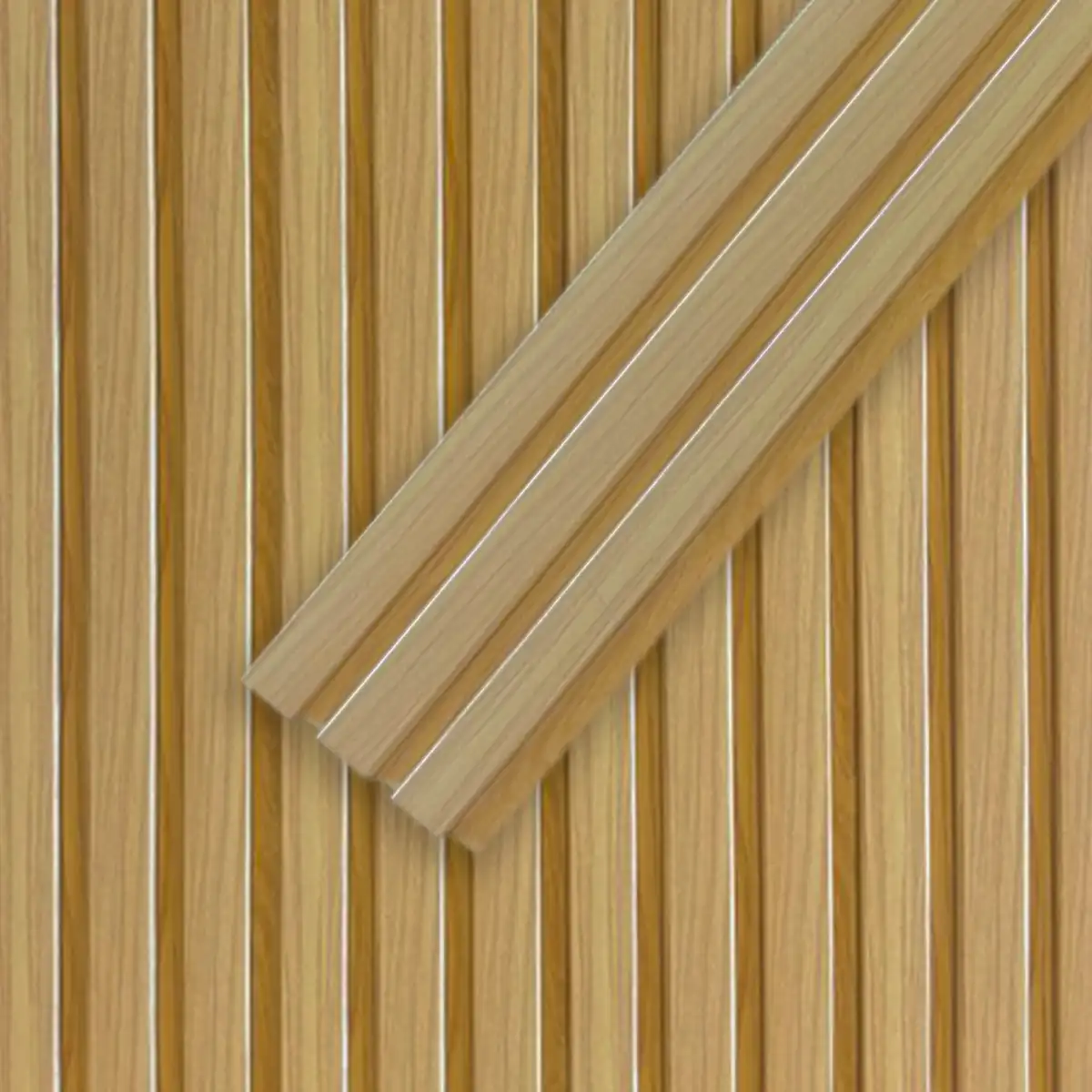 Revestimiento Wall Panel Dubai acanalado para interiores. Fabricados en EPS, revestidos con una lámina en tonos símil madera.