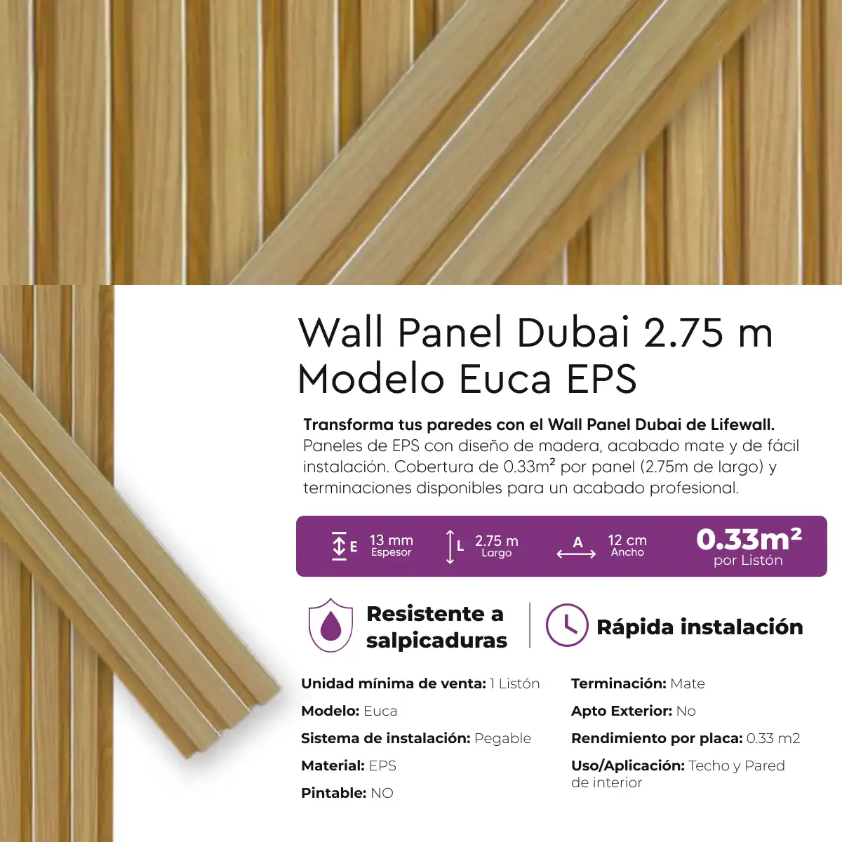 Revestimiento Wall Panel Dubai Euca EPS Mate 2.75 m