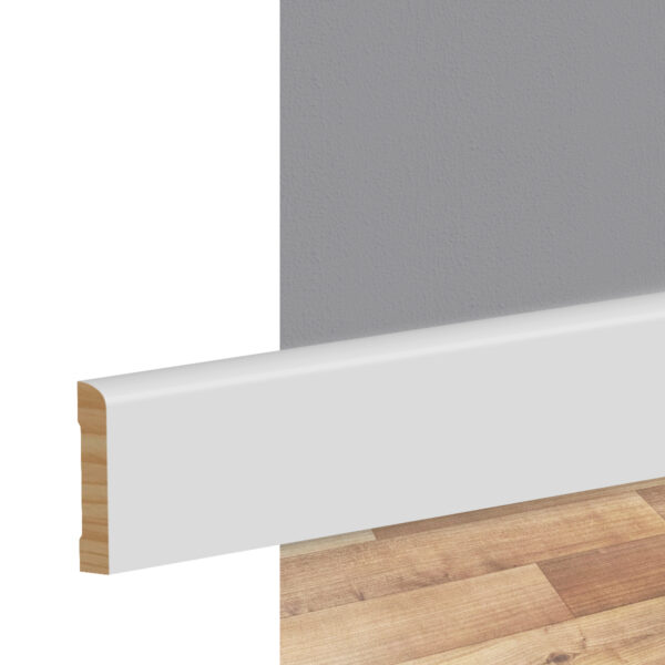 Zócalo de pino prepintado, de cara plana y terminación curva, que se adapta a todos los estilos.